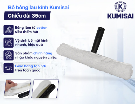 Bộ bông lau kính Kumisai 35cm chuyên dụng giúp công việc lau chùi bề mặt kính nhanh chóng và hiệu quả hơn.
