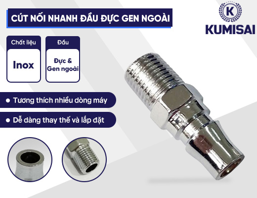 Cút nối nhanh đầu đực gen ngoài là phụ kiện quan trọng trong các hệ thống khí nén, giúp kết nối nhanh chóng và tiện lợi giữa dây hơi và các thiết bị khí nén khác.