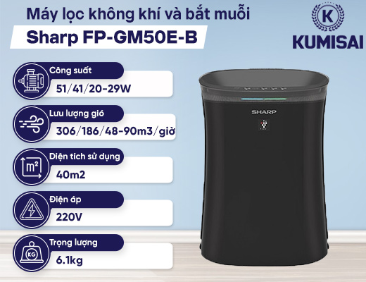 Là thiết bị tích hợp lọc không khí và bắt côn trùng, Sharp FP-GM50E-B là thiết bị không thể thiếu cho các gia đình để giữ an toàn cho trẻ nhỏ. Hiện sản phẩm đang được phân phối bởi Kumisai Việt Nam với mức giá 4.500.000 VNĐ.