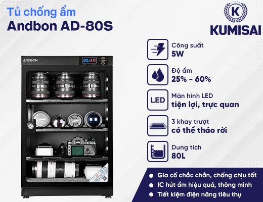 Thông số tủ chống ẩm máy ảnh Andbon AD-80S